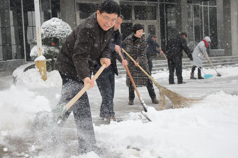 “幸福都是奮斗出來的”。經過一個多小時的奮戰,大家終于將辦公樓前主要入口、主干道等地的積雪鏟除,為師生員工開辟了一條通暢之路。雖然大家的頭發、衣服、鞋子都弄濕了,也出了一身的汗,可看著眼前通暢干凈的道路,大家都很有成就感,每個人的臉上都洋溢著開心的笑容。