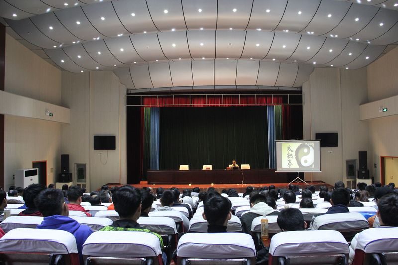 為弘揚太極文化,推進我校太極拳活動的開展,豐富校園文化內涵,12月2日下午,河南理工大學教授申國卿應邀在我校南校區報告廳作了題為“修身養性太極拳”的精彩學術報告。校領導魏曰高、鄭廣華、申文波、張浦及學校正科級以上干部、全體輔導員、太極拳培訓骨干及部分院系師生近300人參加了報告會。報告會由校紀委書記張浦主持。