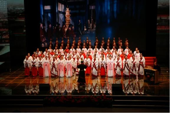 下圖是我校14、15級(jí)學(xué)生參與的《詩(shī)經(jīng)合唱音樂(lè)會(huì)》演出