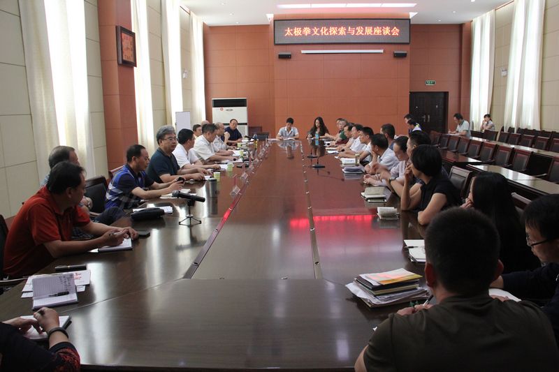 9月22日下午,我校在南校區行政樓二樓報告廳召開太極拳文化探索與發展座談會。校領導魏曰高、鄭廣華、符德學、楊中漢、申文波、張浦出席座談會。焦作市原武術館館長任成功,河南理工大學第一附屬醫院中醫科主任楊樹明,太極拳文化研究學者王志乾及學校太極武術學院、藝術學院、外國語學院、遠程教育學院、信息中心、編輯部、翻譯中心等部門領導和教師共30余人參加座談會研討,就焦作大學如何更好的搞好太極拳研究,建好太極拳專業形成特色進行溝通和交流。