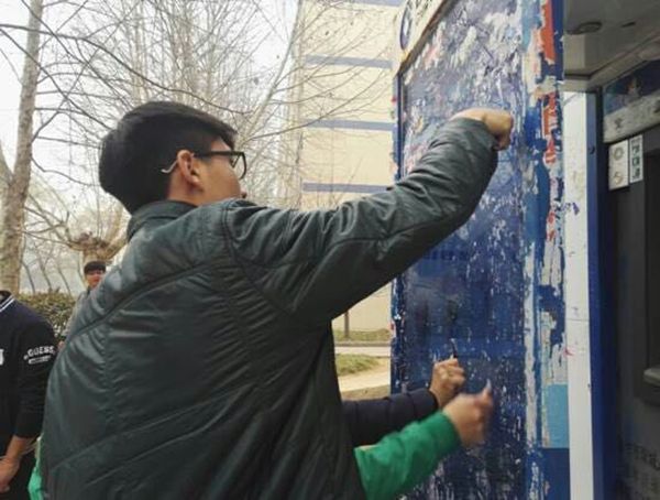 大家以學院為單位分成了若干小隊,有的在生活區將我們的生活垃圾,以及草坪上的白色污染進行了清掃;有的在教學區針對教室、教學樓外圍進行了認真的打掃,連教學樓內衛生間的小廣告也沒漏網;有的將學校的各條路段打掃的干干凈凈。校學生會的同學更是對學校各個角落的小廣告進行了清除。清理過程中,同學們充分發揚吃苦精神,不怕臟,不怕累,整個場面熱火朝天。經過同學們幾個小時的辛苦勞動,校園面貌煥然一新。