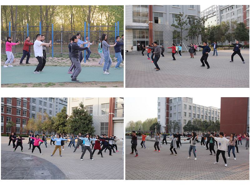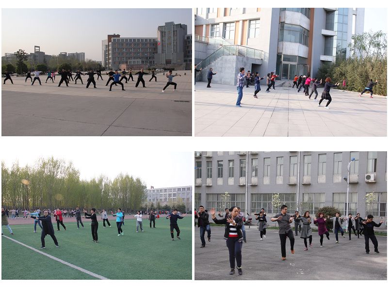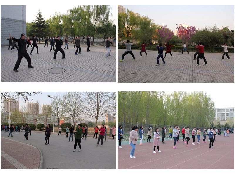 為加強(qiáng)全體教職工體育鍛煉,凸顯我校太極拳文化特色,根據(jù)校黨委的要求,在全校范圍內(nèi)積極開(kāi)展學(xué)練太極拳活動(dòng)。學(xué)校各分工會(huì)、各學(xué)院自行組織師生,每天下午課外活動(dòng)時(shí)間積極學(xué)練太極拳。緊張的工作和學(xué)習(xí)之余,師生們來(lái)到操場(chǎng)、廣場(chǎng),在太極武術(shù)學(xué)院太極拳專(zhuān)業(yè)的老師或?qū)W生的帶領(lǐng)下,打起太極拳,一招一式,練得非常認(rèn)真。