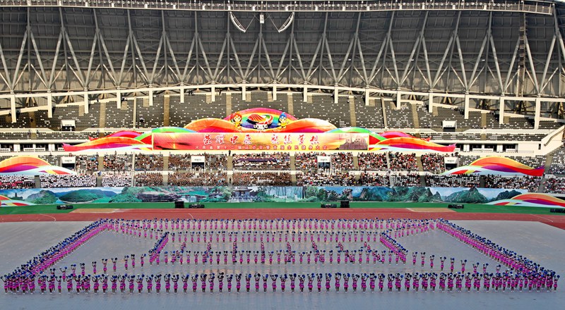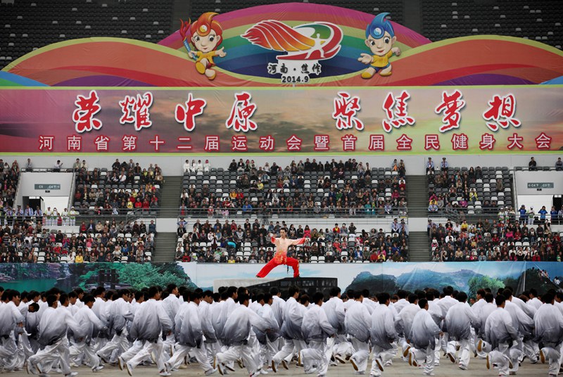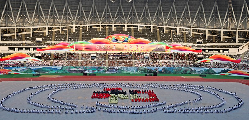 其中,1260名學生參加了《尋夢·武韻中原》、《筑夢·激情中原》《追夢·活力中原》、《逐夢中原》四個篇章的表演。300余名志愿者分布在體育場主席臺、入口、廣場、看臺,協助工作人員從事引領、檢票、咨詢、安保等志愿服務工作。開幕式結束后,志愿者們又拖著疲憊的身軀到體育中心將鋪草墊拆裝打包,直到8:40所有工作才全部結束。
