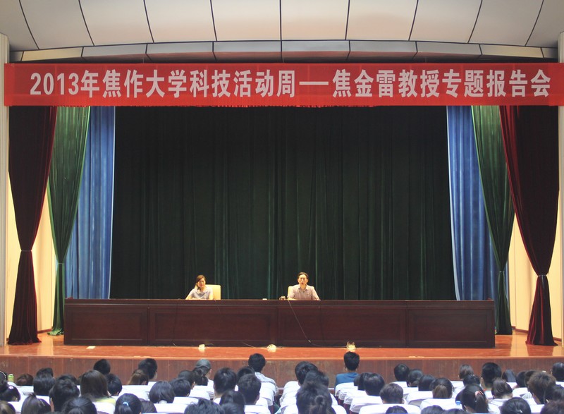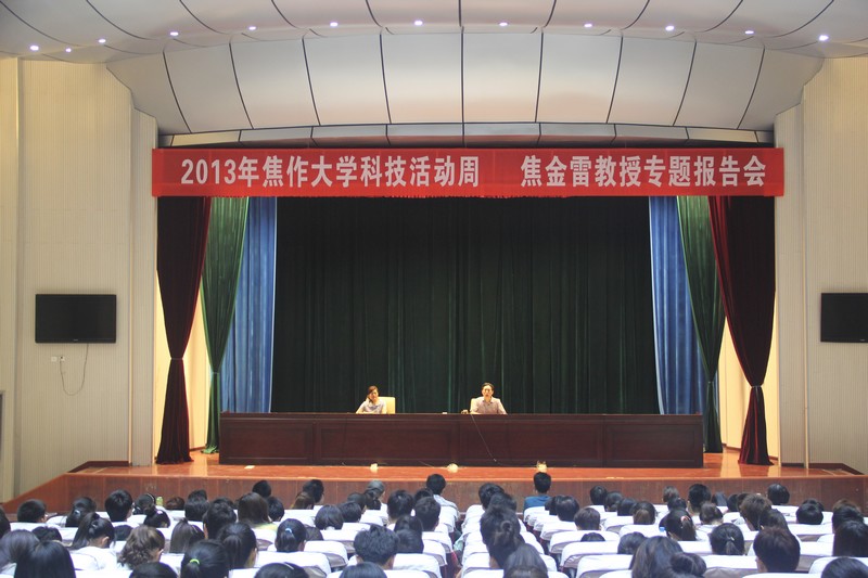 2013年5月20日至24日,焦作大學科研處和團委聯合舉辦了第四屆科技活動周。在被稱為“最難就業季”的新形勢下,為引導學生做好擇業準備,2013年5月22日下午,在焦作大學南校區學術報告廳,焦作大學黨委副書記焦金雷教授專門為同學們開展了一場《大學生就業問題指導》專題講座,講座由科研處處長董春紅博士主持。