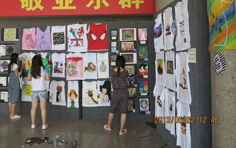 5月22日至23日,在北校區一號教學樓舉辦了由科研處孫玲等老師指導的圖案作品展覽,作品是由藝術系裝潢專業大一學生創作的手繪T恤和繪畫等,尤其是手繪T恤,充滿創意、獨一無二,為全校同學帶來了一場創意與生活結合的藝術展。