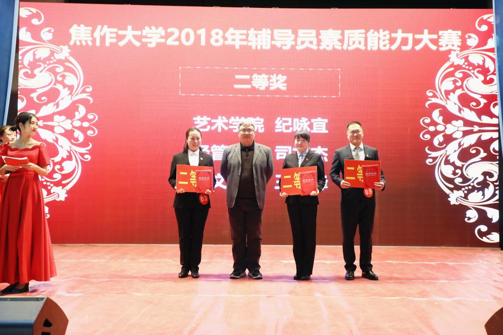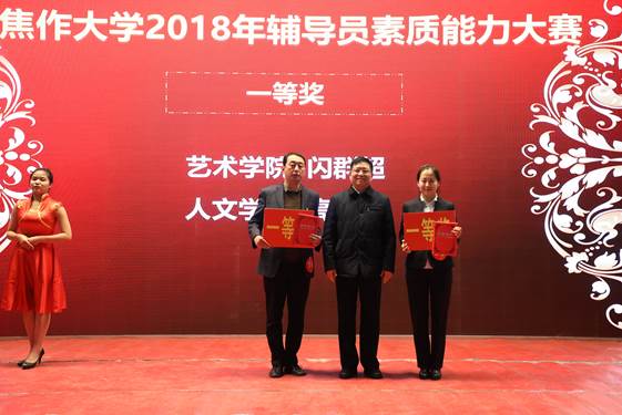 本次大賽分為初賽和決賽,初賽已于12月10日以筆試方式進(jìn)行,重點(diǎn)對(duì)輔導(dǎo)員的基礎(chǔ)理論知識(shí)和網(wǎng)文寫作能力進(jìn)行測(cè)試,經(jīng)過匿名閱卷和嚴(yán)格評(píng)審,共有10名輔導(dǎo)員以優(yōu)異的初賽成績(jī)進(jìn)入本次決賽。決賽共分理論宣講、談心談話和案例分析三個(gè)環(huán)節(jié),全面考察了輔導(dǎo)員的思想政治理論素質(zhì)、職業(yè)能力和專業(yè)素養(yǎng)。最終藝術(shù)學(xué)院閃群超、人文學(xué)院高婷婷榮獲一等獎(jiǎng);藝術(shù)學(xué)院紀(jì)詠宜、經(jīng)管學(xué)院司文杰、人文學(xué)院王毅峰榮獲二等獎(jiǎng);會(huì)計(jì)學(xué)院鐘丹、信息工程學(xué)院趙芝、會(huì)計(jì)學(xué)院王小愛、會(huì)計(jì)學(xué)院劉倩斐、藝術(shù)學(xué)院李清榮獲三等獎(jiǎng)。藝術(shù)學(xué)院、會(huì)計(jì)學(xué)院、人文學(xué)院榮獲本次大賽優(yōu)秀組織獎(jiǎng)。校黨委書記魏曰高、副校長(zhǎng)符德學(xué)、學(xué)生處處長(zhǎng)李存紅分別為優(yōu)秀組織獎(jiǎng)、一等獎(jiǎng)、二等獎(jiǎng)、三等獎(jiǎng)選手頒發(fā)了獲獎(jiǎng)證書。