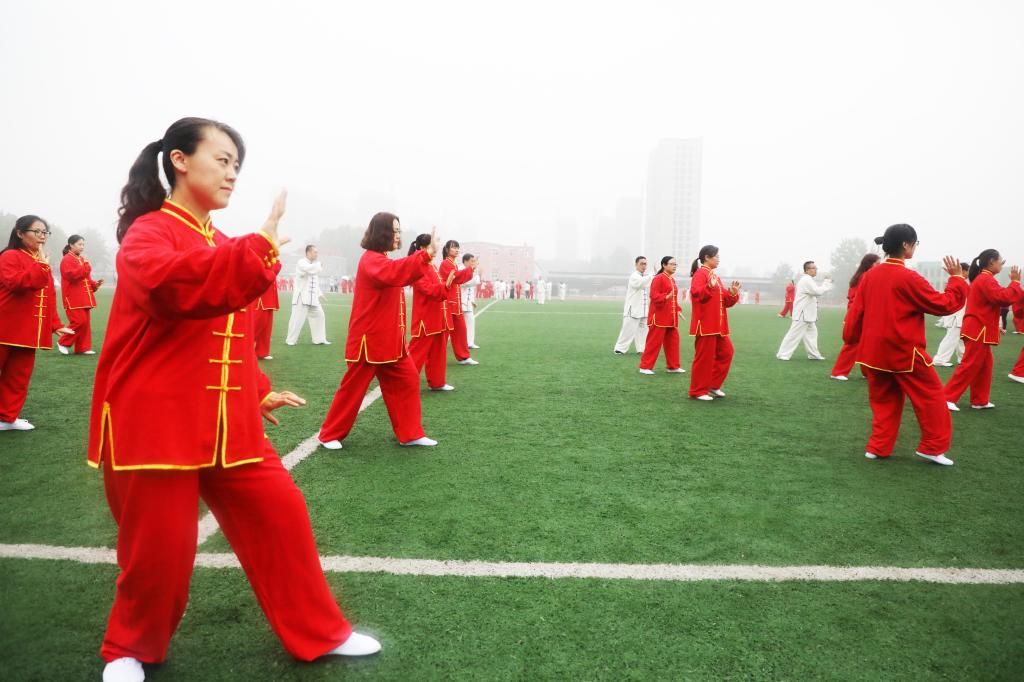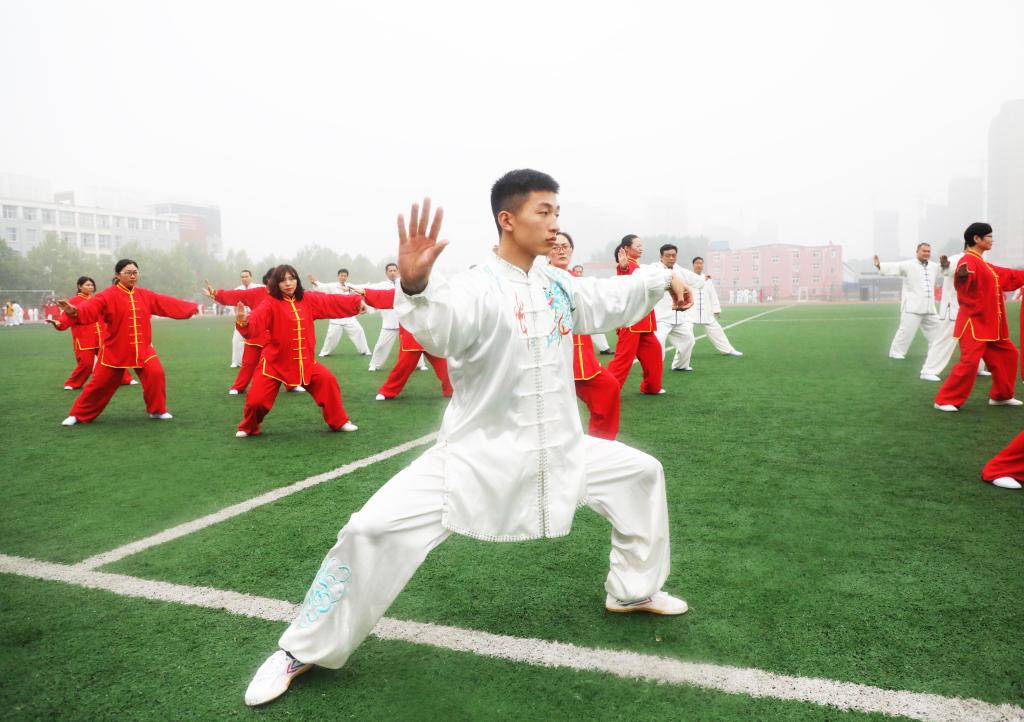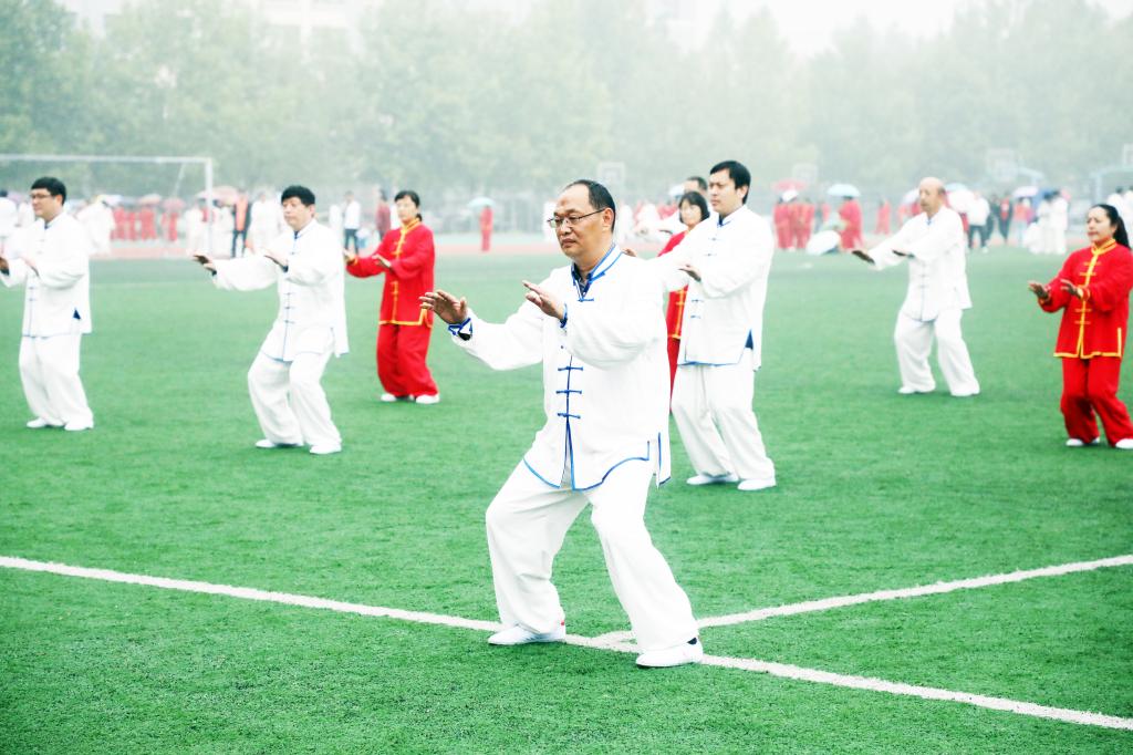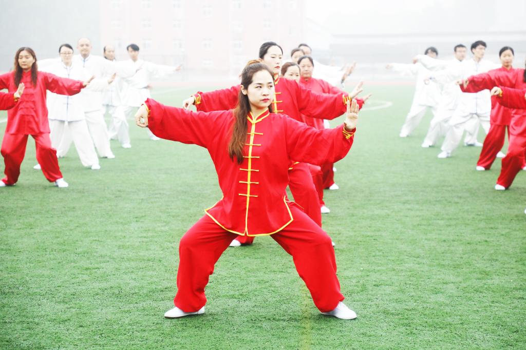 比賽場上,老師們個個揮灑自如,將太極拳含蓄內斂、連綿不斷、以柔克剛、急緩相間、行云流水的拳術風格淋漓盡致地展現在大家眼前,怡情怡性,悠遠綿長的太極拳音樂加上天空中零星的毛毛細雨,更顯意境深遠,韻味十足。從出場到展演,再到退場,展現在我們眼前的都是那般嫻熟。我校全體教職工經過兩個多月的共同努力,熟練掌握了太極拳的動作要領。為了這次表演賽我校全體教職工卯足了勁,抓緊每一分每一秒的練習時間,珍惜每一次的集體練習機會。在練習過程中能夠發揚互幫互助的精神,此次比賽豐富了教職工的精神文化生活,充分展現了中國文化的博大精深、源遠流長,也傳承了民族文化與精神,更增進了教職工之間的情誼。