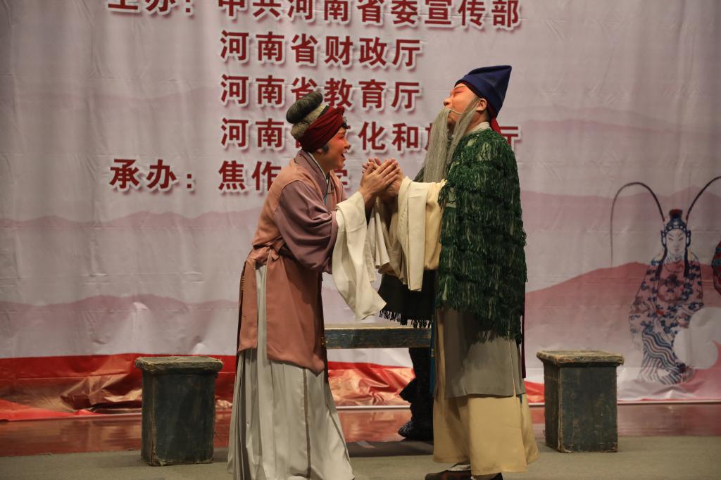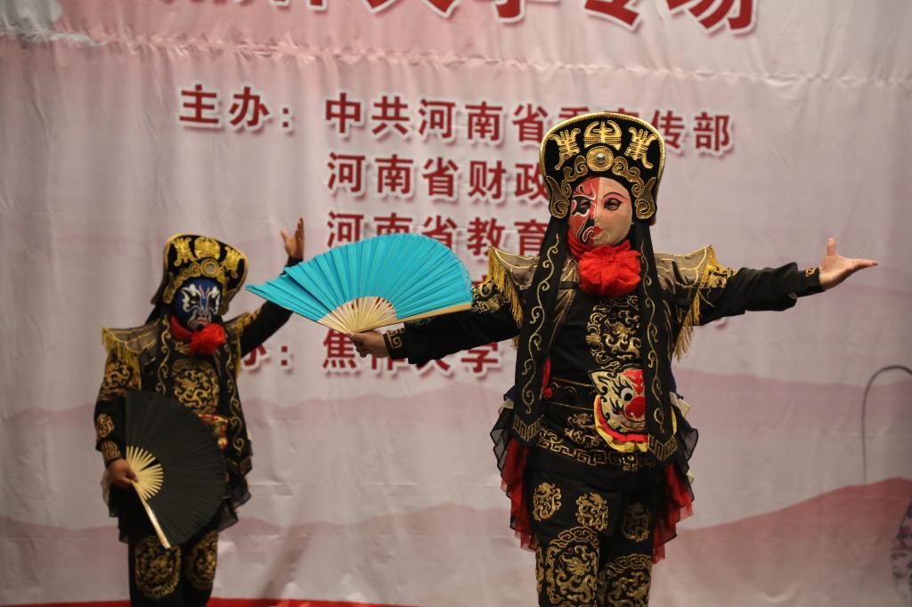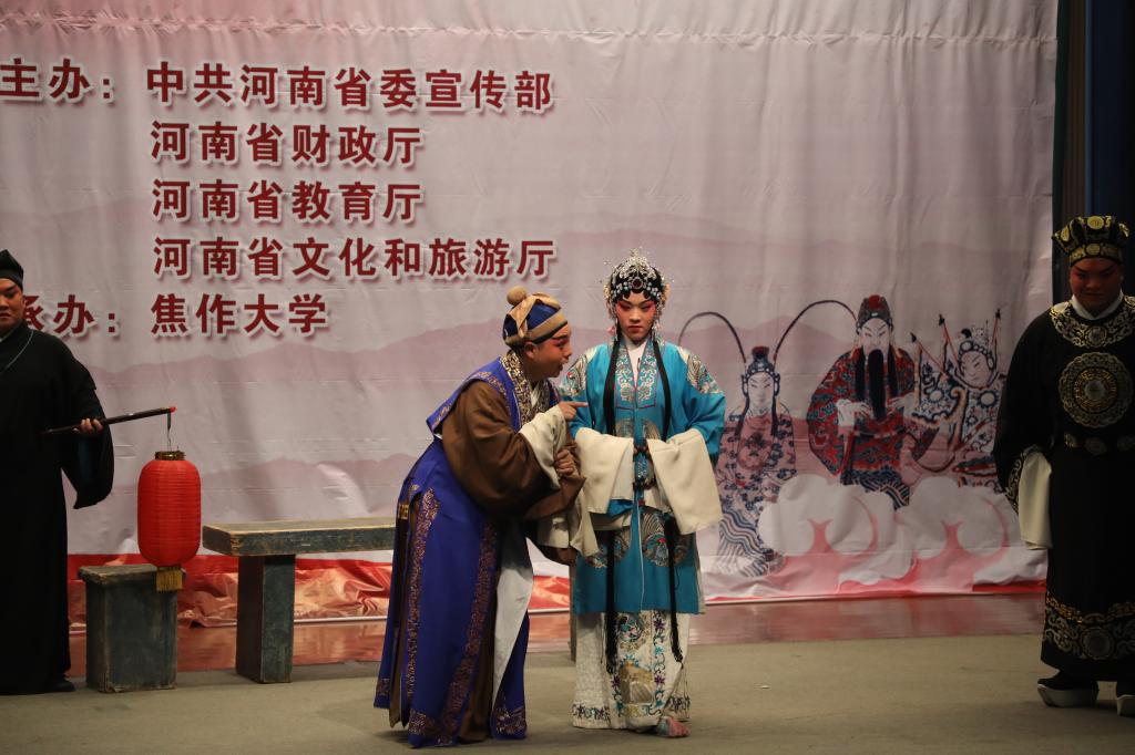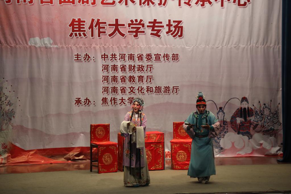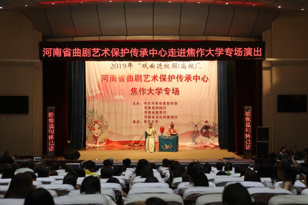 為弘揚(yáng)社會(huì)主義核心價(jià)值觀,培養(yǎng)青年學(xué)生對(duì)優(yōu)秀傳統(tǒng)文化的興趣,增強(qiáng)學(xué)生戲曲藝術(shù)素養(yǎng)和審美素養(yǎng)。根據(jù)《河南省教育廳 河南省文化和旅游廳聯(lián)合下發(fā)關(guān)于做好2019年“舞臺(tái)藝術(shù)送基層”活動(dòng)“戲曲進(jìn)校園”高校組演出工作的通知》(教體衛(wèi)藝〔2019〕210號(hào))文件精神, 6月1日,河南省2019年“戲曲進(jìn)校園”焦作大學(xué)專場(chǎng)演出活動(dòng)在南校區(qū)報(bào)告廳舉行。河南省曲劇藝術(shù)保護(hù)傳承中心的表演藝術(shù)家們?yōu)槲倚熒鷥A情奉獻(xiàn)了一場(chǎng)戲曲文化盛宴。我校300余名師生、退休教職工及戲曲愛好者共同觀看了演出。