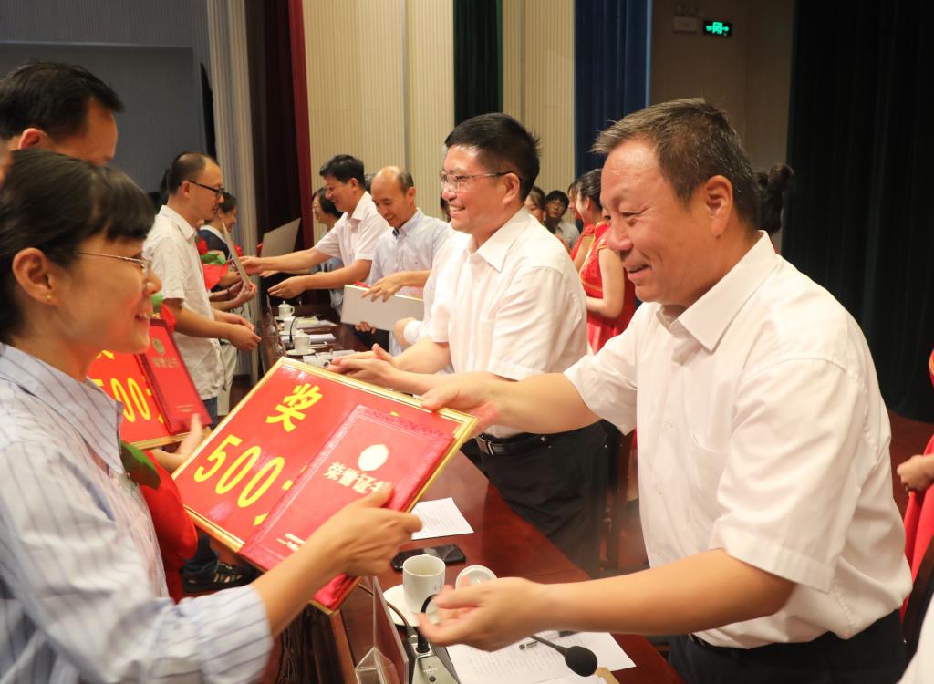 會(huì)上,校領(lǐng)導(dǎo)分別宣讀了省教育廳、市教育局和學(xué)校的表彰文件,并為先進(jìn)集體、優(yōu)秀教師和優(yōu)秀教育工作者代表、先進(jìn)標(biāo)兵頒獎(jiǎng)。