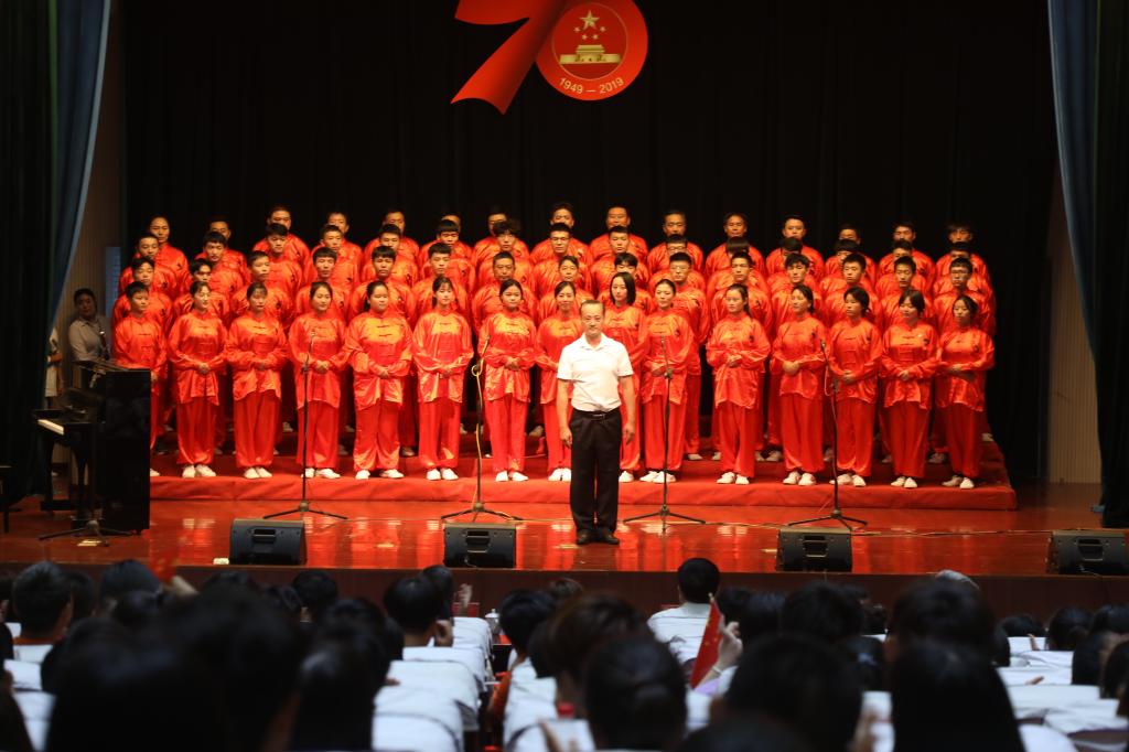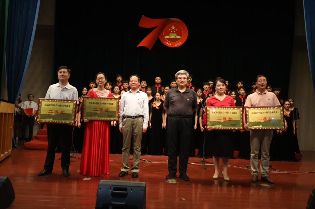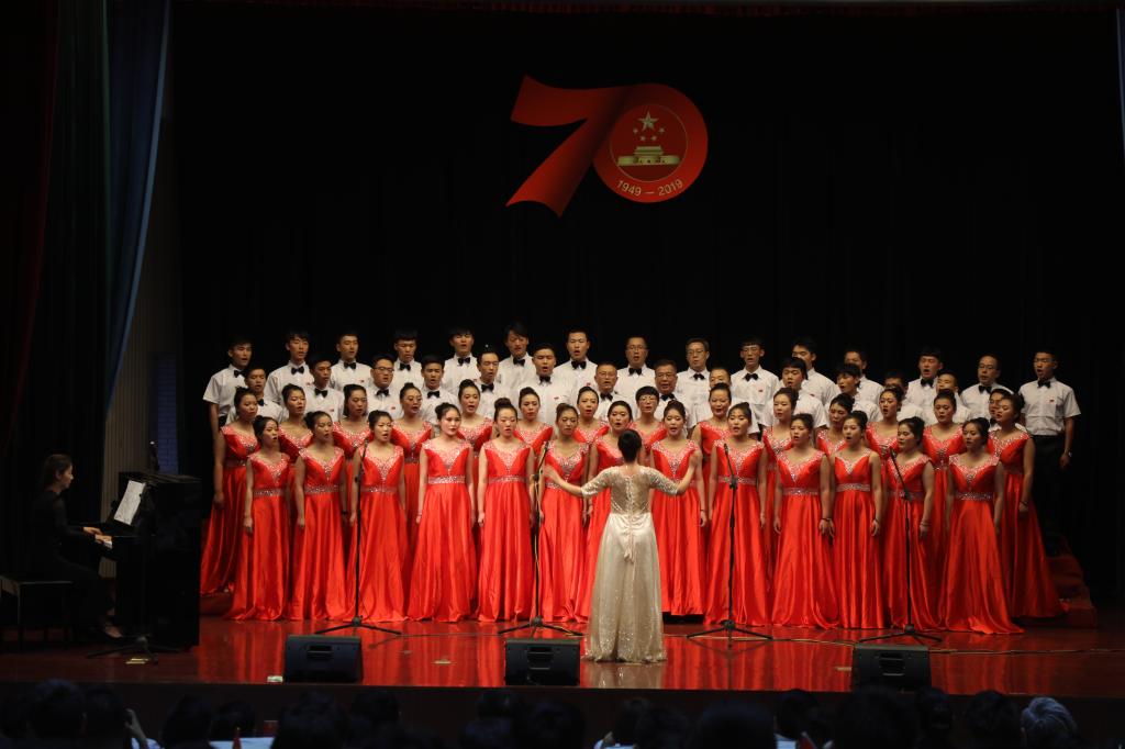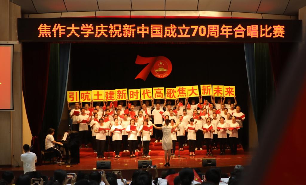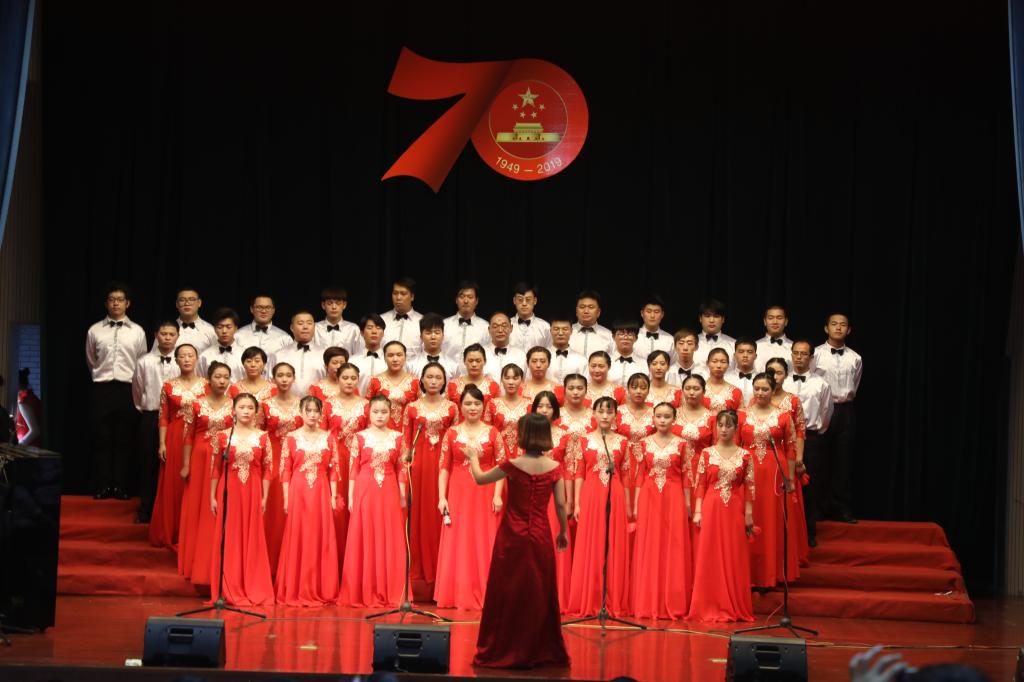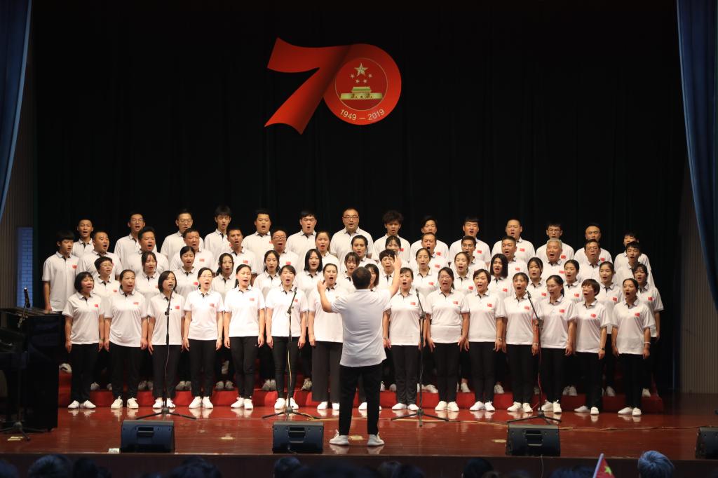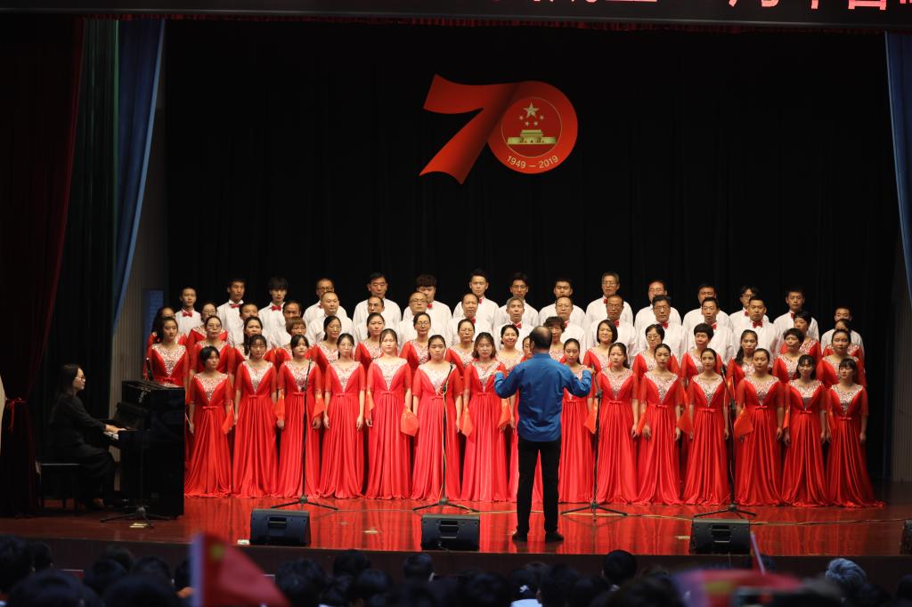 舞臺上,師生們飽滿的情緒、整齊統一的演唱服裝、豐富多彩的節目形式、動人的歌聲、真摯樸實的朗誦,令人心潮澎湃、熱血沸騰,展現了我校師生積極向上、奮發有為的精神風貌,唱出了新中國成立70周年砥礪前行的奮斗贊歌,唱出了我校師生對黨和祖國的深厚感情,凝聚起推動學校高質量發展的磅礴力量和為學校建設奮力拼搏的決心。