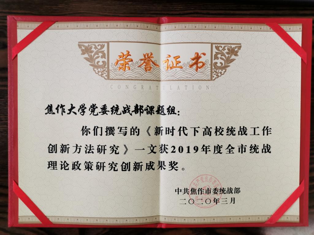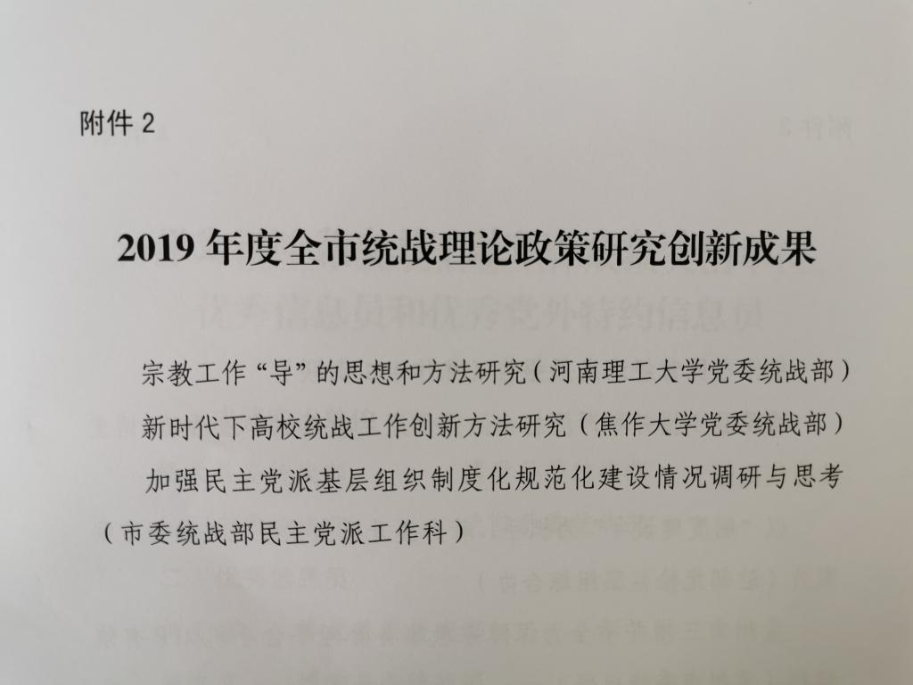我校統(tǒng)戰(zhàn)工作課題研究獲2019年度 全市統(tǒng)戰(zhàn)理論政策研究創(chuàng)新成果