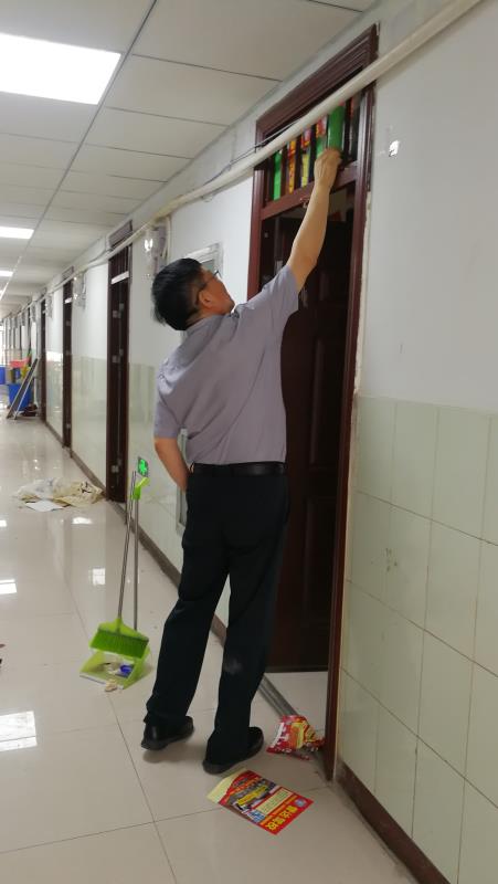 5月18日-20日,機(jī)關(guān)黨總支140余名教職工對(duì)南校區(qū)3號(hào)男生宿舍樓126間宿舍進(jìn)行了認(rèn)真打掃。機(jī)關(guān)各黨支部書(shū)記、部門(mén)領(lǐng)導(dǎo)主動(dòng)帶頭,不嫌臟、不怕累。大家分批分層清除宿舍內(nèi)墻角蜘蛛網(wǎng)、掃地拖地、整理桌面床鋪、擦拭窗戶(hù)玻璃、清理衛(wèi)生死角等。窗戶(hù)臟了,卸下來(lái)清理干凈再裝上,地面拖了一遍又一遍,宿舍很快變得整齊有序,窗明幾凈。