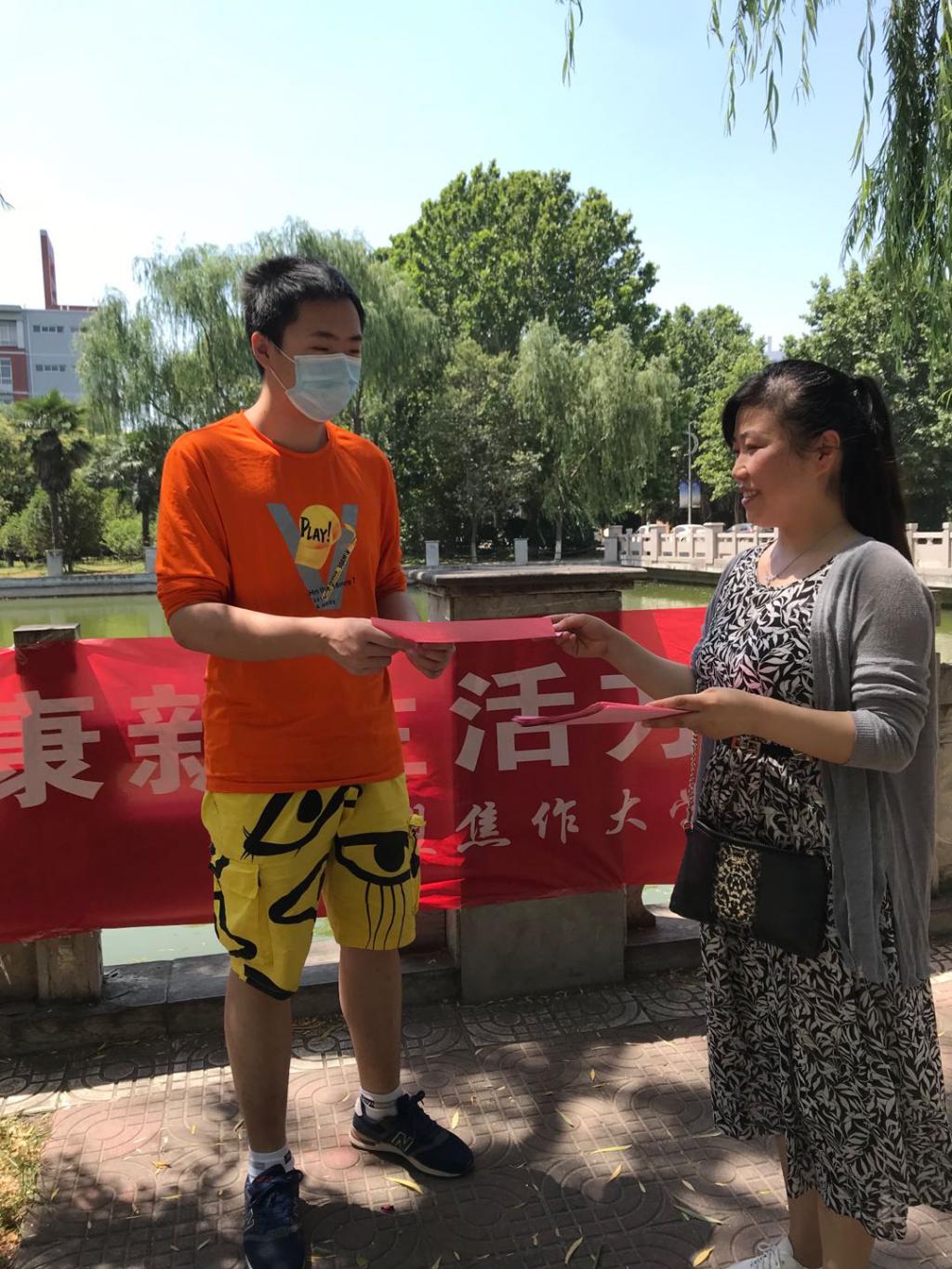 (民盟焦作大學支部盟員劉成君老師給學生發倡議書)