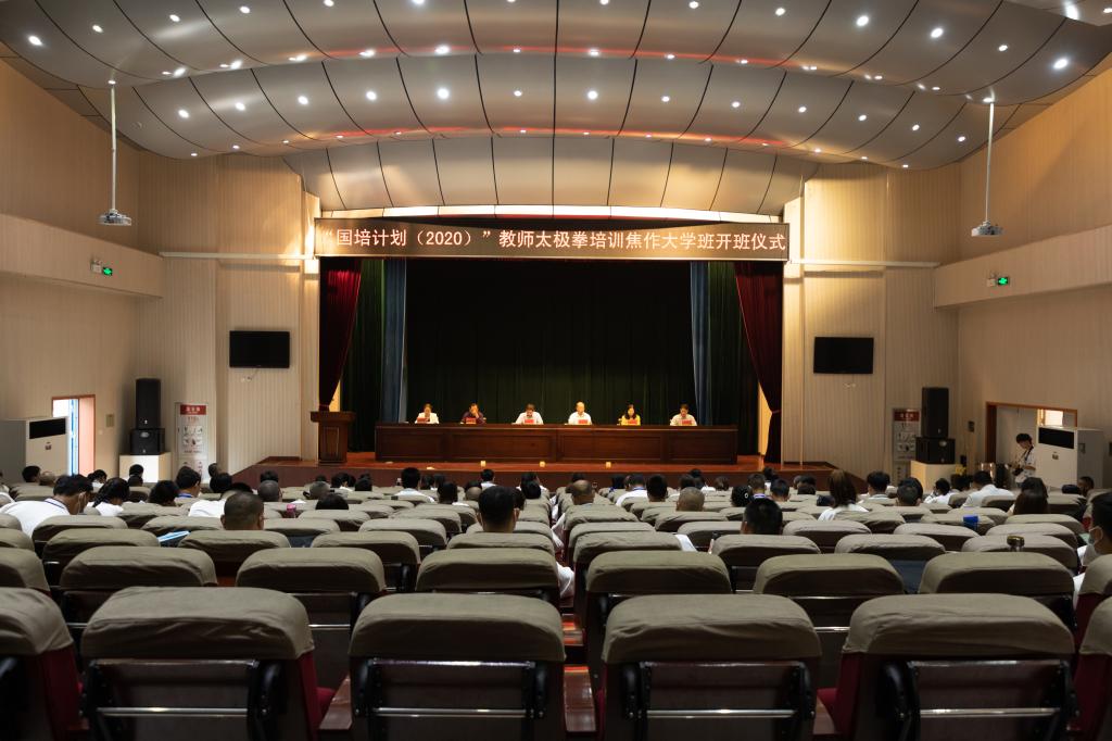 9月24日上午,2020年“國(guó)培計(jì)劃”緊缺薄弱學(xué)科教師太極拳培訓(xùn)班(第一期)開(kāi)班典禮在我校南校區(qū)報(bào)告廳舉行。副校長(zhǎng)秦海金、對(duì)外合作培訓(xùn)處處長(zhǎng)趙春青、太極拳文化研究發(fā)展中心主任邢樹(shù)強(qiáng)、繼續(xù)教育學(xué)院院長(zhǎng)徐莉萍、太極武術(shù)學(xué)院院長(zhǎng)王友軍,以及來(lái)自我省14個(gè)“國(guó)培計(jì)劃”項(xiàng)目區(qū)縣的100名中小學(xué)多學(xué)科省級(jí)及以上名師參加了開(kāi)班典禮。開(kāi)班典禮由校黨委委員、黨政辦公室主任林五星主持。