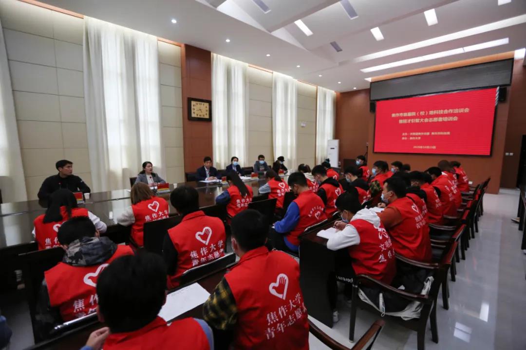 2020年10月17日至19日,焦作市首屆院(校)地科技合作洽談會暨招才引智大會在我市舉行,為做好本次大會志愿服務工作,大力弘揚“奉獻、友愛、互助、進步”的志愿服務精神,號召全體志愿者以積極的態度和飽滿的熱情投入到會議志愿服務中,校團委面向全校各學院青協招募100名青年志愿者,他們分別負責新聞宣傳、后勤保障、嘉賓邀請、開幕式及簽約、成果發布等5大類崗位。