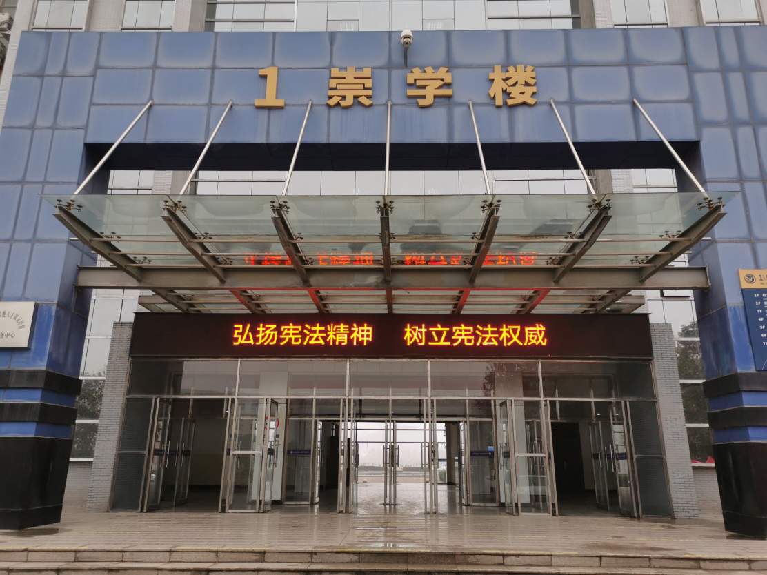 (崇學樓LED屏幕播放憲法宣傳標語)