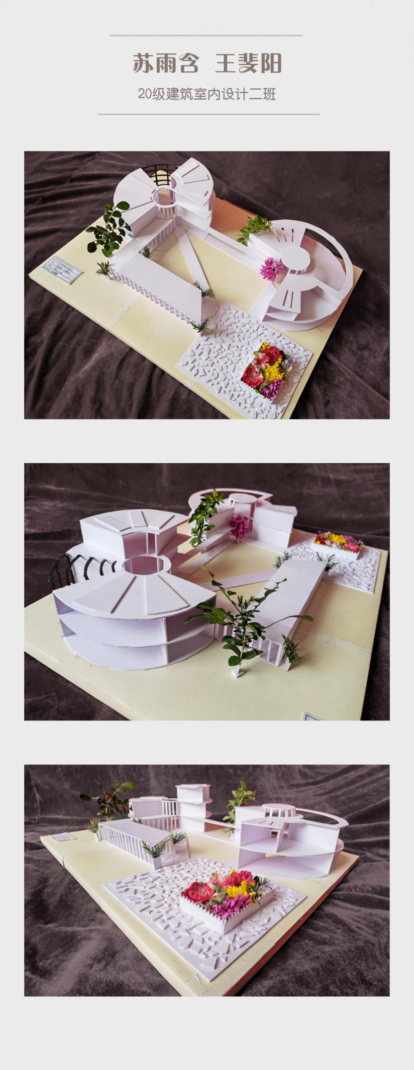 “一課一展”是藝術學院為提升教師的課程意識,全面深化課堂教學改革而推出的一種教學模式,無論是對于教師還是學生都具有很大的挑戰(zhàn)。這不僅意味著學生的作品要具有較高的水準,也意味著任課教師要投入更多的時間和精力以助力優(yōu)秀作品的孵化。經過四周的學習與實踐,20級建筑室內設計專業(yè)的同學們在喬乾老師、井蓓蕾老師和張婉璐老師的指導下,對于空間的認識及安排取得了顯著的進步。