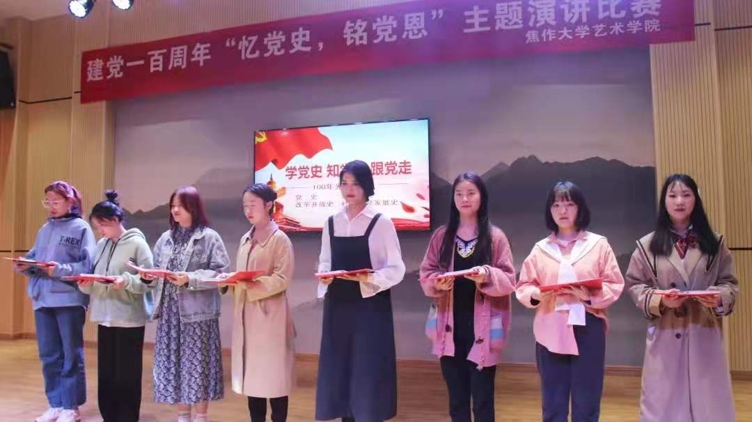 為迎接建黨100周年,藝術學院近期舉辦了“憶黨史、銘黨恩”演講比賽。演講主題緊扣黨史、新中國史、改革開放史、社會主義發展史以及優秀共產黨員的先進事跡,歌頌中國共產黨成立100周年以來領導全國人民在革命、建設和改革進程中所取得的偉大成就,充分激發廣大學生的愛國熱情,講好紅色故事,宣傳紅色理念、樹立文化自信。