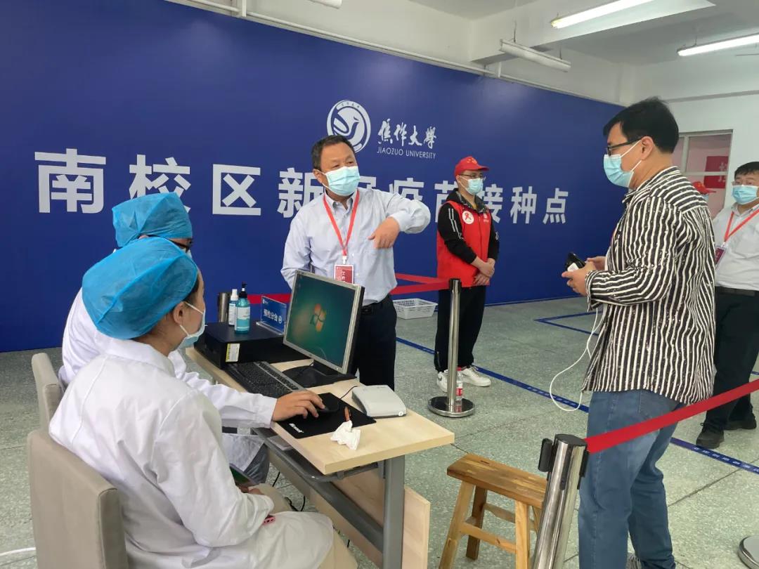 為做好此項工作,校黨委書記魏曰高、校長鄭廣華分別于5月7日、8日到疫苗接種現(xiàn)場檢查指導(dǎo)疫苗接種工作,對接種流程、接種時間、演練時長、接種現(xiàn)場指揮協(xié)調(diào)、現(xiàn)場秩序維護、人員防護、環(huán)境消毒、注射前后心理疏導(dǎo)等提出具體要求。