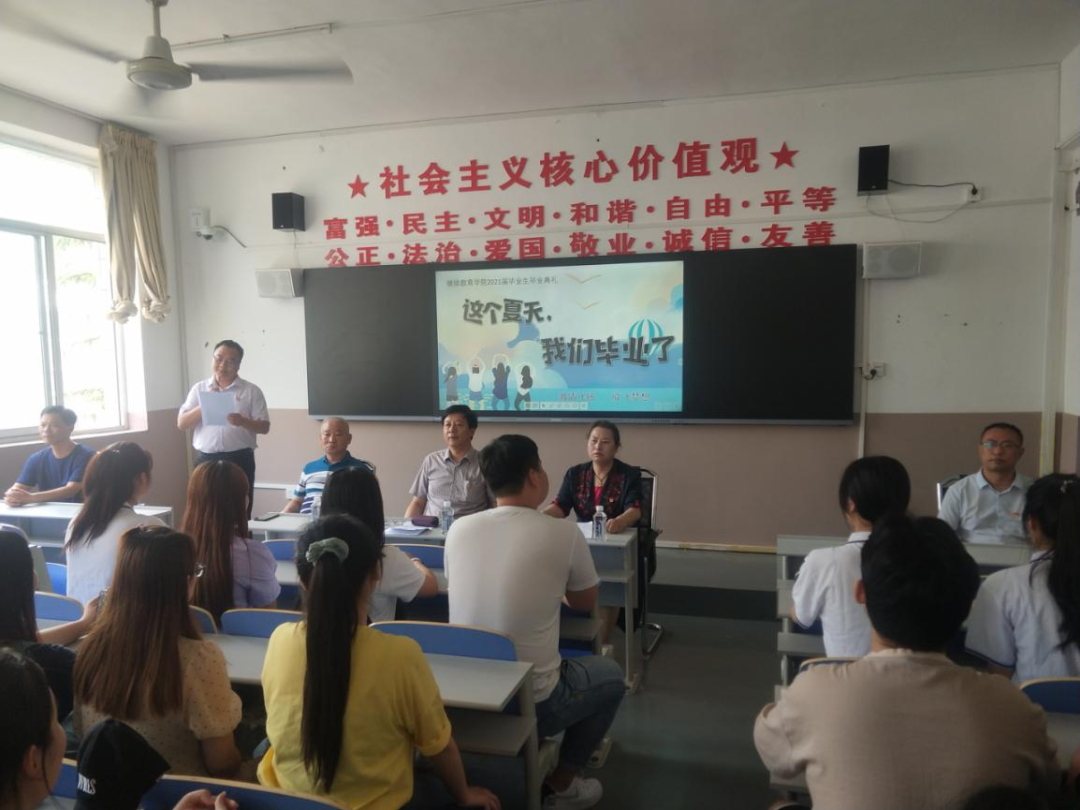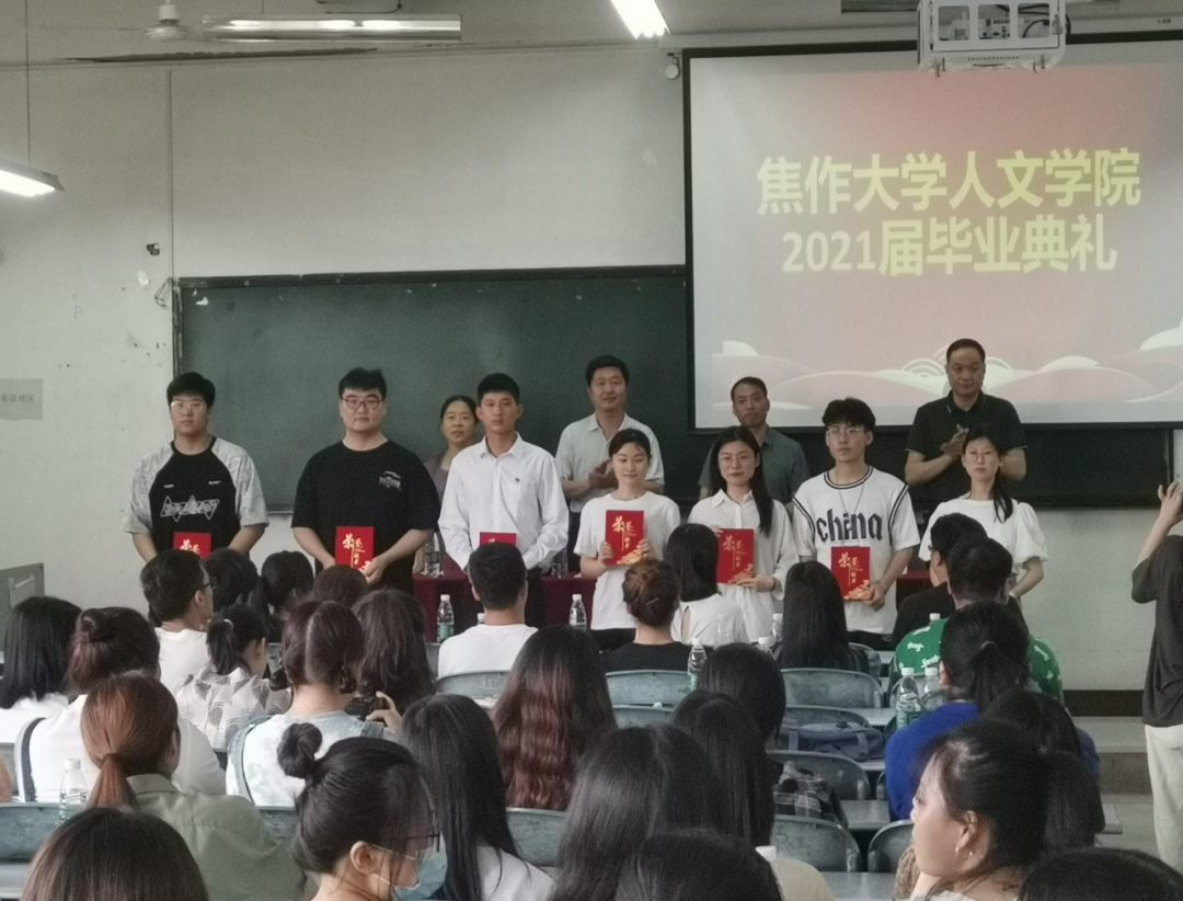 6月6日上午,在崇學(xué)樓409教室里,人文學(xué)院2021屆畢業(yè)生畢業(yè)典禮暨優(yōu)秀畢業(yè)生表彰大會在雄壯的國歌聲中拉開帷幕。校黨委委員、副校長吳玉倫參加了本次活動。院長徐曼、教師代表扈曉婕以及在校生代表分別為畢業(yè)生送上了美好的祝福。與會領(lǐng)導(dǎo)為2021屆優(yōu)秀畢業(yè)生頒發(fā)榮譽(yù)證書并合影留念。