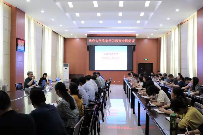 符德學從黨史學習教育效果檢驗、問題討論入手,逐步展開講述了紅軍長征的歷史背景以及“四渡赤水”戰役前的不斷探索,詳細講解了四渡赤水的過程和偉大意義。其中,重點闡述了毛澤東的軍事指揮藝術:發揮紅軍徒步快速機動的能力,“走”“打”結合,化被動為主動,創造和尋找戰機,掌握戰場主動權。符德學接著分析了四渡赤水給我們六個方面的啟示:紅軍指戰員堅定的理想信念、黨組織的堅強領導;馬克思主義原理和中國革命相結合---黨中央和毛澤東同志一切從實際出發,運用得當的戰略戰術;有效的情報工作;黨的正確的群眾路線;紅軍艱苦奮斗不怕犧牲的精神;一切行動聽指揮的紀律保證。最后,符德學專門強調了這些經驗與啟示對我校師生平時工作實踐的現實指導意義。
