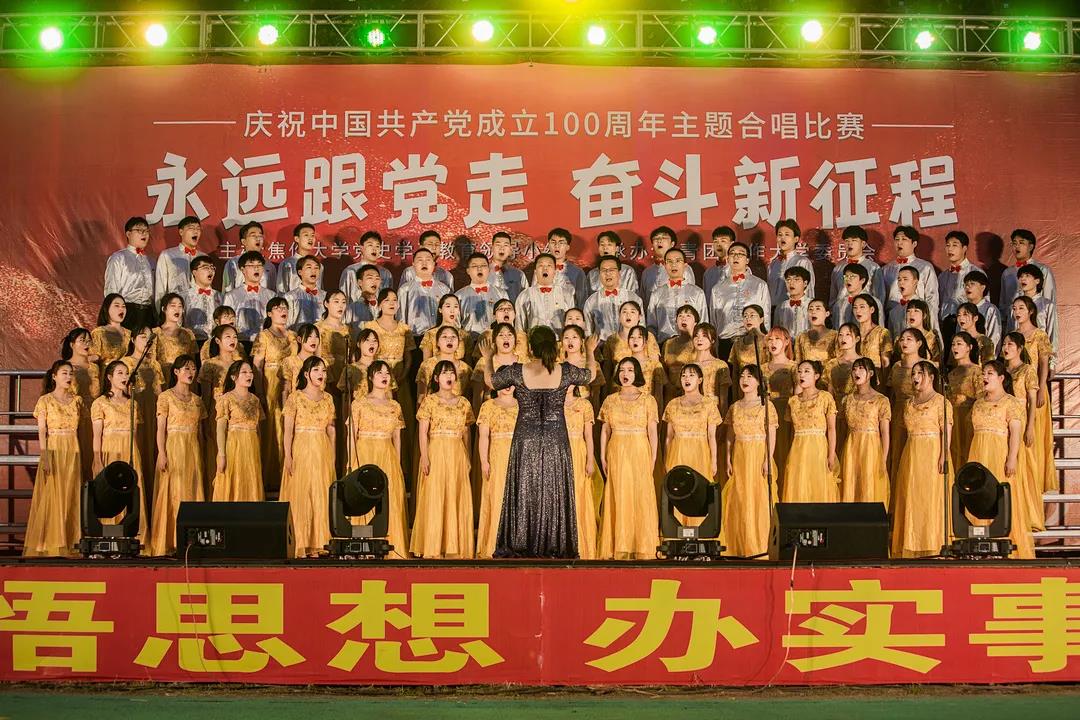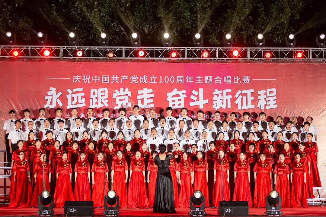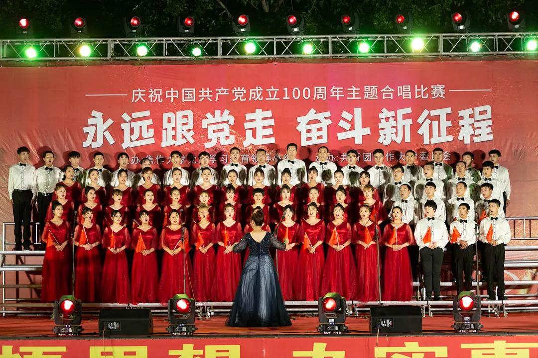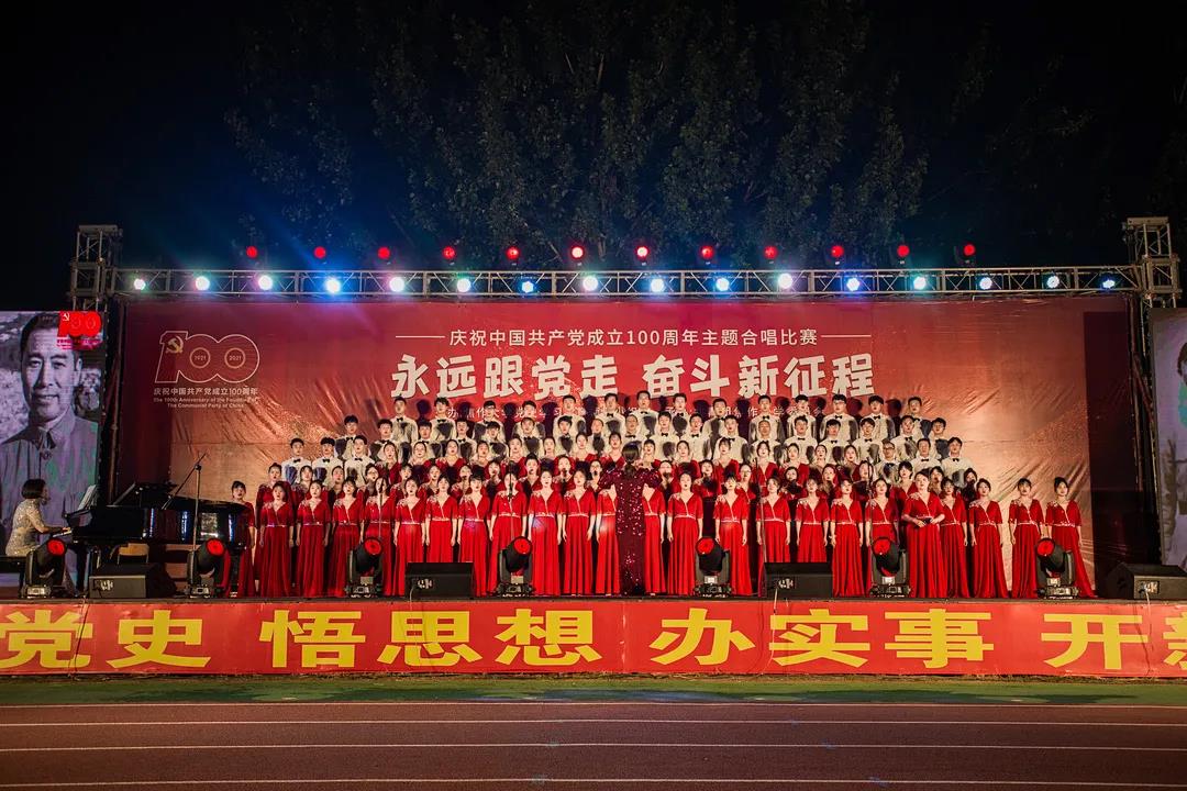 以音樂重溫黨史,用歌聲銘記初心。在中國共產黨即將迎來百年華誕之際,為貫徹落實習近平總書記關于用好紅色資源的重要指示精神,推動黨史學習教育進一步入腦入心、走深走實,6月23日晚,由校黨史學習教育領導小組主辦、校團委承辦的“永遠跟黨走 奮斗新征程”慶祝中國共產黨成立100周年主題合唱比賽在南校區田徑場隆重舉行。