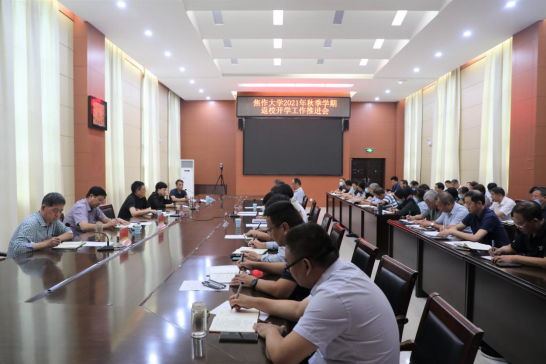 9月17日下午,我校召開2021年秋季學生返校工作推進會。學校領導班子成員、各院部主要負責人,以及學校疫情防控各專班負責人參加會議。會議由校黨委書記魏曰高主持。