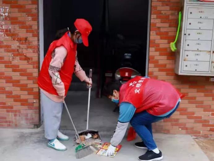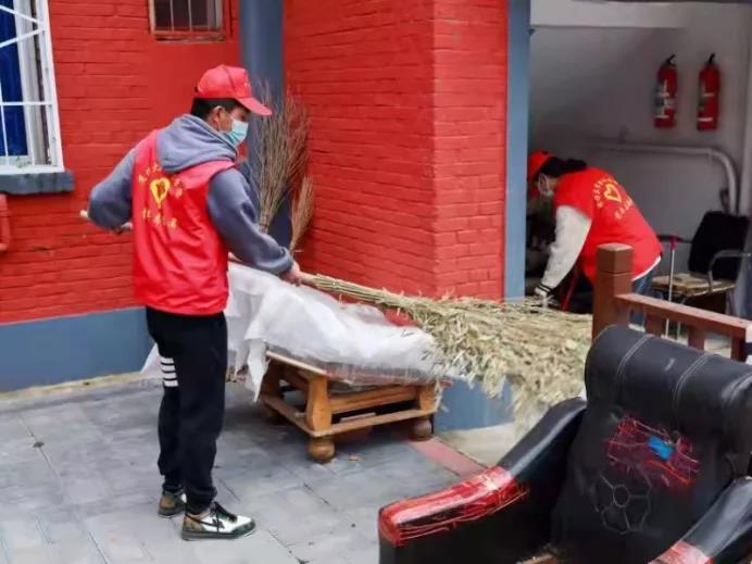 志愿者們分成四個小組,深入整個社區,打掃街上的落葉和垃圾,清理樓道內外的雜物。志愿者們分工協作,不怕臟,不怕累,認真將社區各個角落打掃的干干凈凈,整理的井井有條,美化了社區環境,方便了居民出行。有幾位社區居民看到朝氣蓬勃的志愿者們辛苦地勞動,十分感慨,便和同學們聊起了家常,對大家的熱心行動稱贊連連。