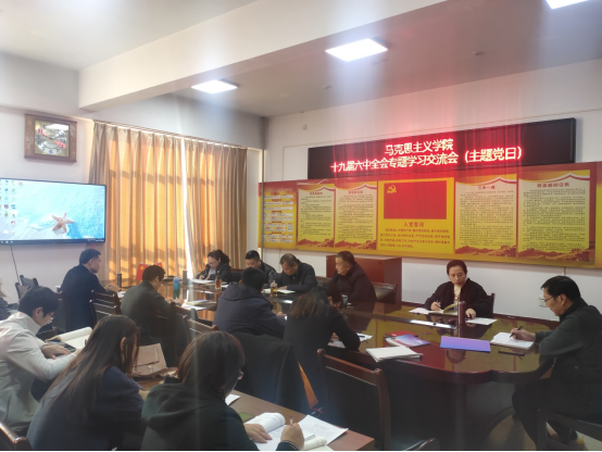黨的十九屆六中全會(huì)是在黨的百年華誕及“兩個(gè)一百年”奮斗目標(biāo)的歷史交匯期召開的一次具有重要里程碑意義的盛會(huì)。為及時(shí)學(xué)習(xí)宣傳貫徹全會(huì)精神,先學(xué)一步,深學(xué)一層,馬克思主義學(xué)院在2021年11月26日召開了黨的十九屆六中全會(huì)精神專題學(xué)習(xí)交流會(huì)。會(huì)議由黨總支書記張育琳主持,馬院全體教師參加。