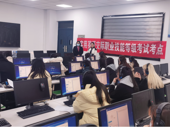 2021年11月27日,我校外國語學院組織2020級學生在一號實驗樓參加了1+X實用英語交際職業技能等級證書(Vocational English Test System,簡稱VETS)。此次考試為全國首考,采用機考形式,模擬現代化職場辦公環境。全國27個省市自治區96個城市194所院校組織學生參加考試。我校為焦作市唯一一所成功申報試點,并組織學生參加VETS考試院校。