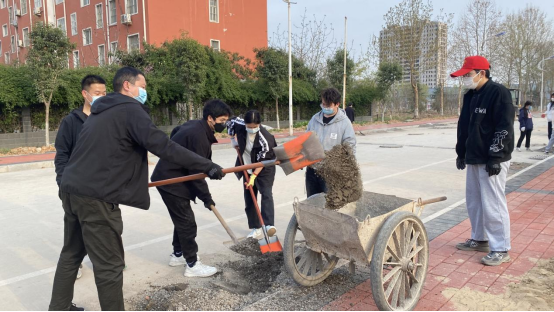 在輔導(dǎo)員老師的帶領(lǐng)下,大家發(fā)揚(yáng)“特別能戰(zhàn)斗”精神,無懼辛苦,協(xié)力配合,分組施工。拉沙組、鏟灰組、搬磚組、清理垃圾組各司其職,“后援”和“技師”各就其位。師生們以比賽的標(biāo)準(zhǔn),開展了學(xué)以致用的專業(yè)實(shí)踐,圓滿完成了任務(wù),恢復(fù)了暢通潔凈、方便出行的安全道路。