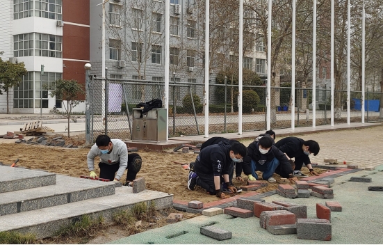 近期,受疫情影響,學(xué)校實(shí)行封閉管理。校園道路改造工程暫停,有的地方地磚、沙石還堆在路面上,部分道路被堵塞。為了方便人員通行,排除安全隱患,滿足學(xué)生日?;顒?dòng)場地需要,土木建筑工程學(xué)院在遵守疫情防控規(guī)定和施工安全要求的前提下,組織老師、參加技能大賽的同學(xué)、志愿者,對南校區(qū)操場附近和主教學(xué)樓東側(cè)兩處路面分別進(jìn)行了拆除重鋪和路面清理,以專業(yè)技能參與學(xué)校環(huán)境建設(shè)。