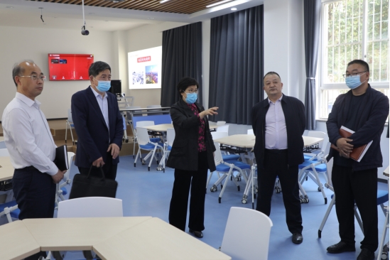 “大練兵”活動開始之前,校長霍曉麗、副校長秦海金等領導在馬克思主義學院思政VR實訓室調研指導