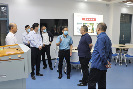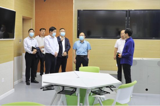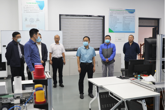 在各學院相關負責人的引導下,汪詩懷一行重點考察了數控車實訓中心、工業機器人綜合應用實訓室、化學生產技術實訓室、云計算實驗室、紅色思政VR實訓室、智慧教室等地。每到一處,汪詩懷都認真查看實踐教學環境,詳細詢問設備使用與管理情況,并與相關人員交流專業學科建設、人才培養、環境和設備升級改造等工作。