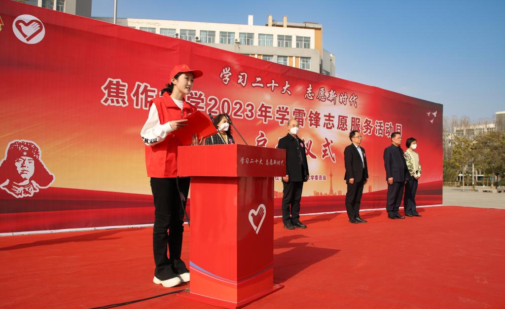 今年是毛澤東等老一輩革命家為雷鋒同志題詞60周年。為深入學習宣傳貫徹黨的二十大精神和習近平總書記對深入開展學雷鋒活動作出的重要指示精神,大力弘揚雷鋒精神和“奉獻、友愛、互助、進步”的志愿精神,3月3日,“學習二十大,志愿新時代——焦作大學2023年學雷鋒志愿服務活動月”啟動儀式在南校區圖書館廣場舉行。