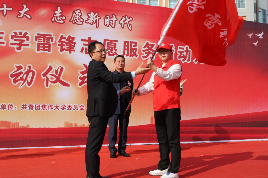汪詩懷為焦作大學學雷鋒志愿服務隊進行了授旗。