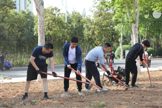 “一把鐵鍬培新土,一柄鋤頭映初心”,在活動中,大家不怕臟、不怕累,背著麻袋,揮著鐵鍬,深一腳淺一腳地踩在土地里,清除雜物、平整土地、播綠更新……通過實干勞動,美化校園,創造潔凈、綠色、和諧的育人環境。后勤基建處以此活動為契機,切實將勞動使命教育、傳統文化弘揚、工匠精神傳承、美麗校園建設等融入基層黨建工作中,發揮黨建引領作用,提高黨建工作水平,助力學校高質量發展。