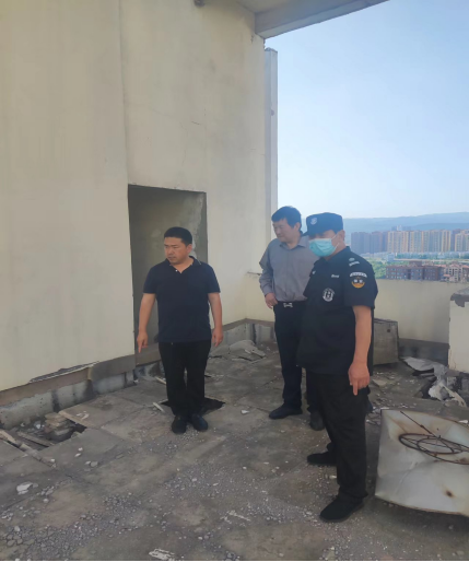 6月9日,孫向召到學校教授公寓進行實地檢查。后勤基建處有關負責人介紹了小區管理存在的突出問題:消防設施不完善;部位監控不能正常使用;高層電梯經常出現問題;樓外墻出現脫落現象。孫向召在保衛處處長李輝、副處長田慶偉的陪同下,到二號樓樓梯間檢查消防設施,到樓頂實地察看部分公共設施,發現樓頂隔熱層因時間原因已經部分坍塌,高位水箱存在漏水現象。針對以上問題,孫向召指示有關部門配合小區物業部門抓緊時間處理,一定要責任到人,把安全工作做實做細,避免安全事故的發生。