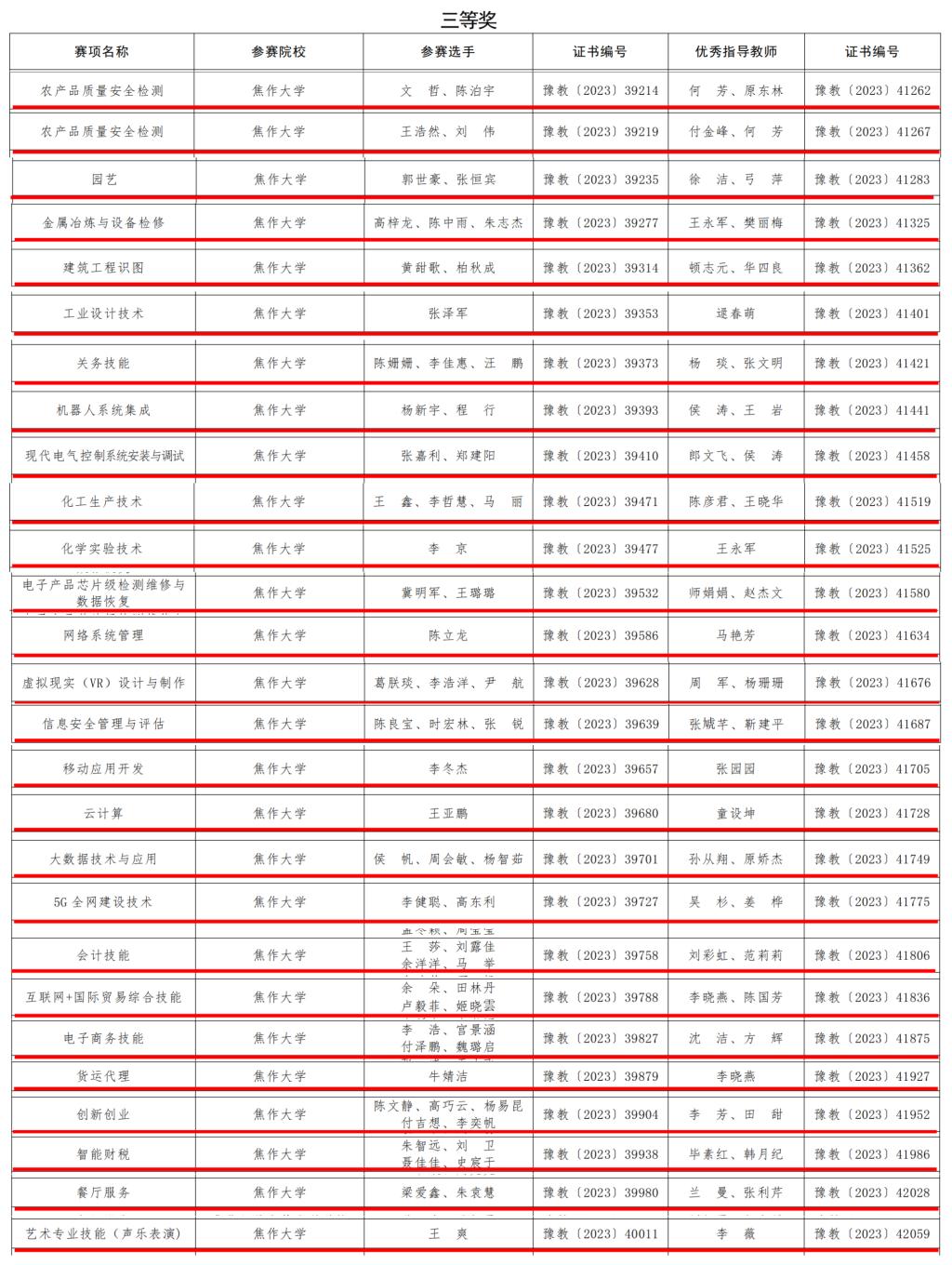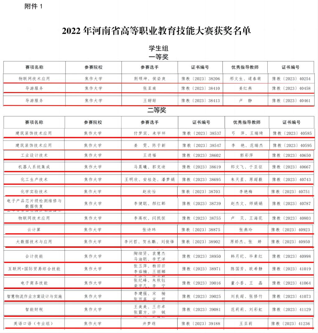 近日,河南省教育廳公布2022年河南省高等職業教育技能大賽獲獎結果,本次技能大賽共設置62個賽項,全省共有95所高職學校的2925支代表隊參加省級競賽,我校共派出62個代表隊,參加了35個高職組賽項。我校參賽師生共獲得學生組項目一等獎3項、二等獎16項、三等獎27項;教師組項目二等獎1項、三等獎1項,共計獲獎48項,獲獎數量突破新高。