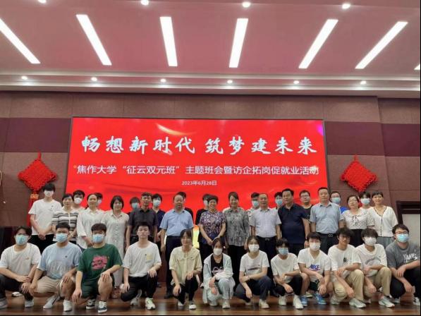 為加強校企合作,深入推進我校產教融合“雙元制”育人,拓寬就業崗位,根據《焦作大學2023年春季“訪企拓崗促就業”專項行動工作方案》要求,2023年6月28日,市政協副主席、校長霍曉麗帶隊到征云集團開展2022級建筑工程技術專業雙元制班主題班會暨訪企拓崗促就業活動。校黨政辦公室、學生處、招生就業處、土木建筑工程學院有關負責同志陪同。