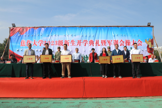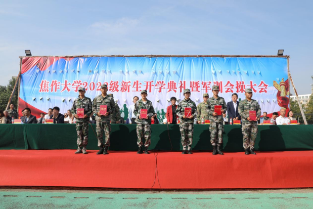 隨后,新生代表、在校生代表、教師代表先后發言。校黨委委員、副校長劉際平宣讀了《焦作大學關于表彰2023級軍訓工作先進集體、先進個人的決定》。校領導和部隊首長為軍訓工作先進集體、優秀教官、優秀指導員代表頒獎,山陽區武裝部部長黃應龍作了講話。