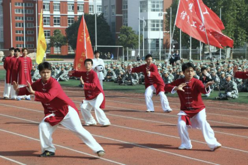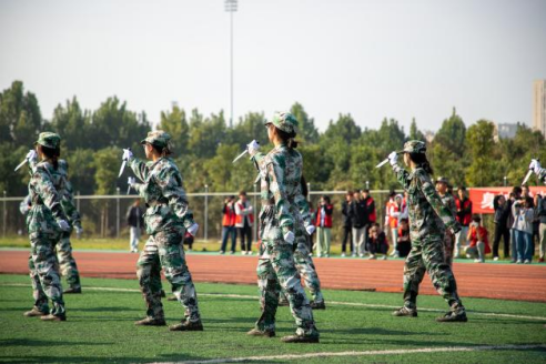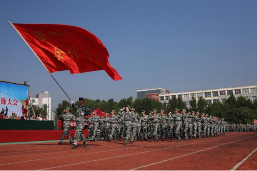 在莊嚴的升國旗儀式后,校黨委書記汪詩懷檢閱軍訓方隊。受訓方隊進行分列式展示。同學們整齊的步伐、嘹亮的口號、高昂的斗志展示了軍訓的優秀成果和積極進取、奮發向上的精神風貌,贏得了現場師生的陣陣掌聲。隨后進行的軍訓節目匯報表演內容豐富、形式新穎,為會操演練增添了樂趣與品味,贏得了現場師生的陣陣喝彩。