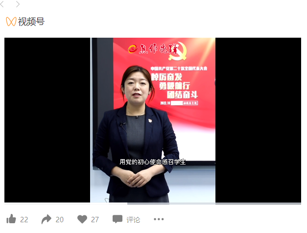 近日,微信視頻號“焦作先鋒 ”對黨的二十大報告在我校引發反響情況進行報道。