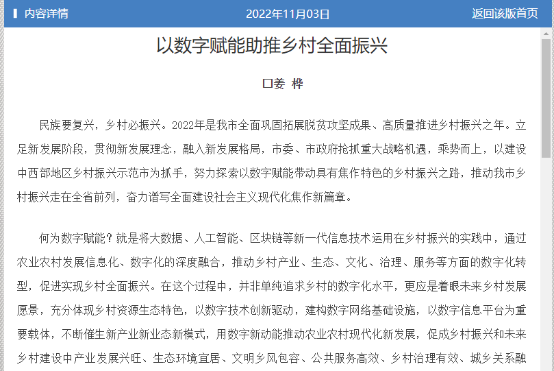 近日,《焦作日報》刊登我校教師姜樺的理論文章《以數(shù)字賦能助推鄉(xiāng)村全面振興》。