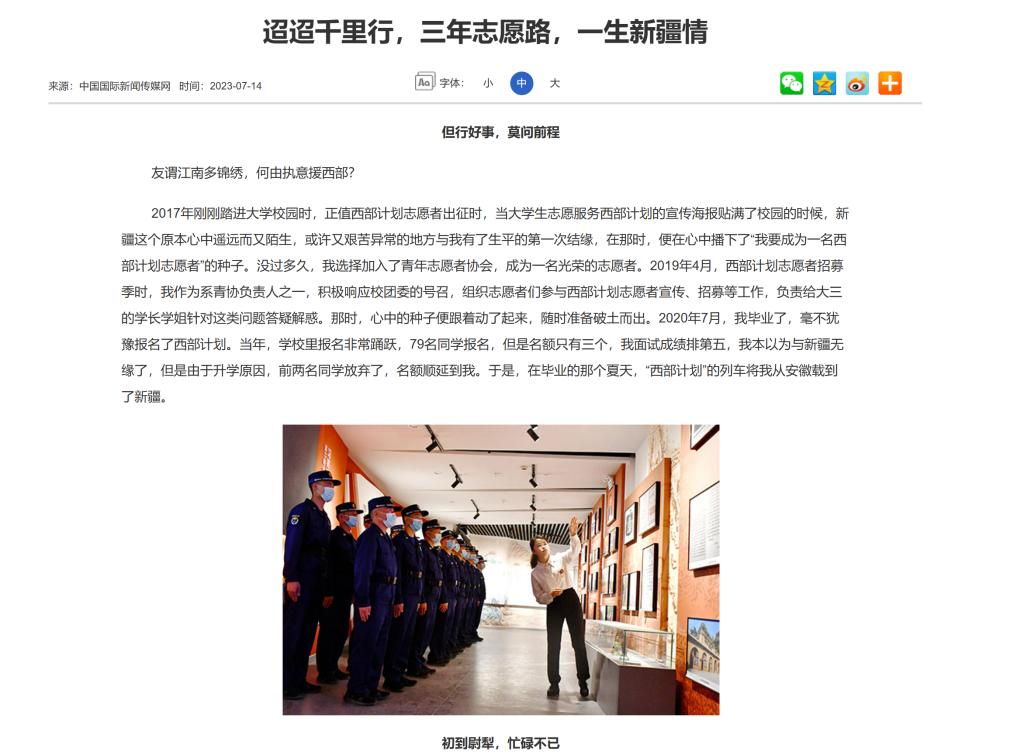 近日,中國國際新聞傳媒網等多家媒體對我校西部計劃志愿者王慧慧的事跡進行報道。