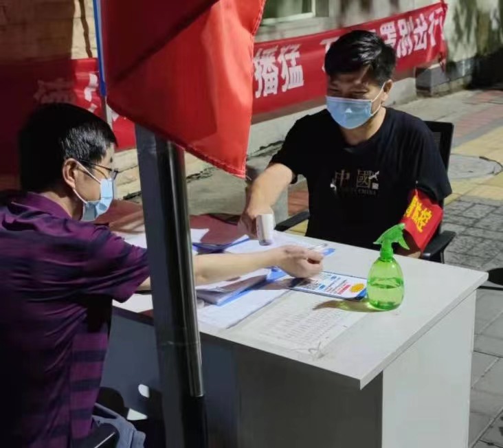 德爾塔新冠疫情再次暴發,廣大黨員干部紛紛發揚偉大的抗疫精神,戮力同心,持續奮斗,用擔當與責任,切實維護人民群眾的身體健康和生命安全。圖書館直屬支部黨員干部發揮先鋒模范作用,積極主動爭當志愿者,紛紛加入居住地小區防疫防控工作,協助街道工作人員和小區保安進行疫情防控卡點值班,用心當好疫情防控的“守門員”和“宣傳員”,構筑起疫情群防群控的嚴密防線:對群眾開展疫情防控知識宣傳,提醒廣大居民做好防護措施,引導社區居民群眾少出門、不聚集、注意衛生,規范戴口罩,不到人多擁擠和空間密閉的公共場所;同時提醒過往群眾嚴格執行登記,量體溫、掃健康碼、查驗疫苗接種情況;在小區內開展不間斷巡邏,以實際行動助力疫情防控工作,齊心協力打贏疫情防控阻擊戰,確保人民群眾的生命健康安全。