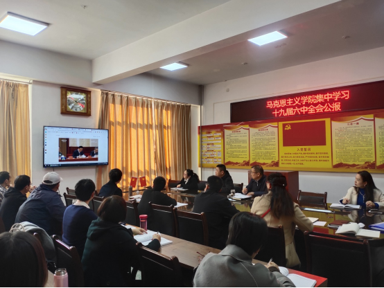 11月12日下午,馬克思主義學(xué)院全體教師集中收看《十九屆六中全會(huì)公報(bào)》并開展將全會(huì)精神融入思政課教學(xué)交流會(huì)。會(huì)議由學(xué)院黨總支書記張育琳主持,學(xué)院全體教師參加。