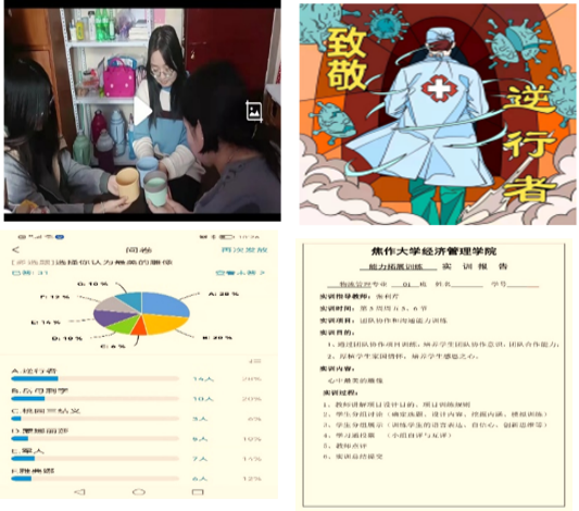 近期,受疫情影響,學校實行封閉管理,老師們再一次成為了網課的主播。即使不能直接面對學生,即便是一門實訓課程,經濟管理學院的老師依然把課程上出了新意。《能力拓展訓練》是經管學院能力拓展訓練課程組開發的一門特色課程,課程組教師以課程標準為基礎,把疫情當教材,精心設計課程,不僅課堂內容豐富有趣,形式別樣,也將思政元素巧妙融入課堂,讓學生們在線上線下學習中,提升思想境界,提高專業技能。