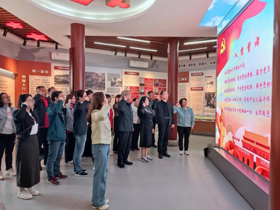 首先,在講解員的帶領下,大家依次對趙莊非遺展覽館、太行八英館、英雄洞、民俗館等進行了參觀學習。在一件件珍貴的歷史文物、一幅幅震撼人心的圖片前,大家駐足參觀、認真聆聽講解,追憶先輩們的英雄事跡,深刻感受革命先烈頑強拼搏、攻堅克難的奮斗精神和為黨和人民的事業“鞠躬盡瘁、死而后已”的獻身精神。參觀結束后,全體黨員在八英館大廳面向黨旗重溫入黨誓詞,在鮮紅的黨旗下莊嚴宣誓,將牢記入黨誓詞,恪盡職守,切實完成好黨和人民賦予的各項工作,以實際行動踐行黨的二十大精神。