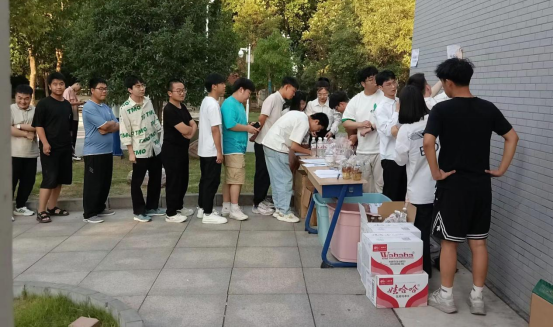 在典禮開始之前,畢業生領取學院為其精心準備的紀念品。